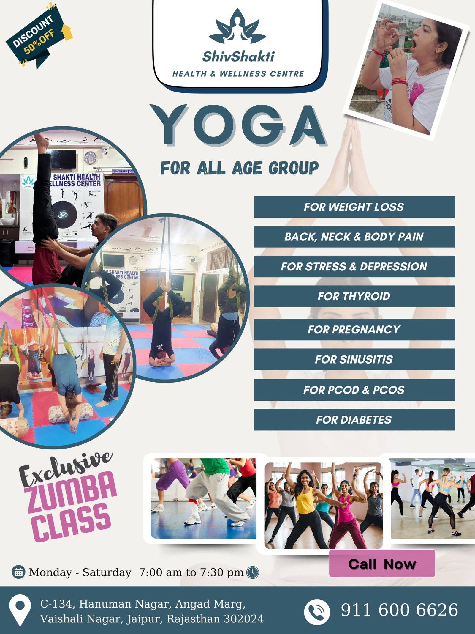 We also provide Sat Kriya to rejuvenate your energy, Aerobics for cardiovascular fitness, and Pranayama to master breath control.